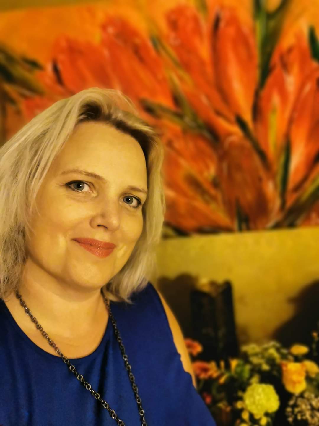 I am an intuitive painter and before I start painting, I create an emptiness within me. I call it the “zero point.” There are no thoughts, only emptiness and from this void, I let the energies flow and sometimes I have to pick up a paintbrush in the middle of the night. My creations are without rules, boundaries or names, they are a free, infinite flow of energy through colors that come in and permit me to start creating. Take your time and feel what my painting is tell you. When you look at my creation, it should give you different feelings and thoughts about it – it talks to you in its unique way. There is no right or wrong, just an experience and feeling of here and now.